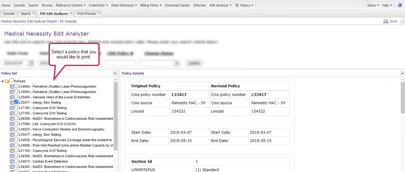 Added a Print icon the Edit Analyzer > Medical Necessity interface that allows Medical Necessity policies to be printed.