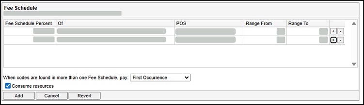 + | Clicking the plus (+) adds another percentage line to the tool and lets you define a fee schedule and place of service. |