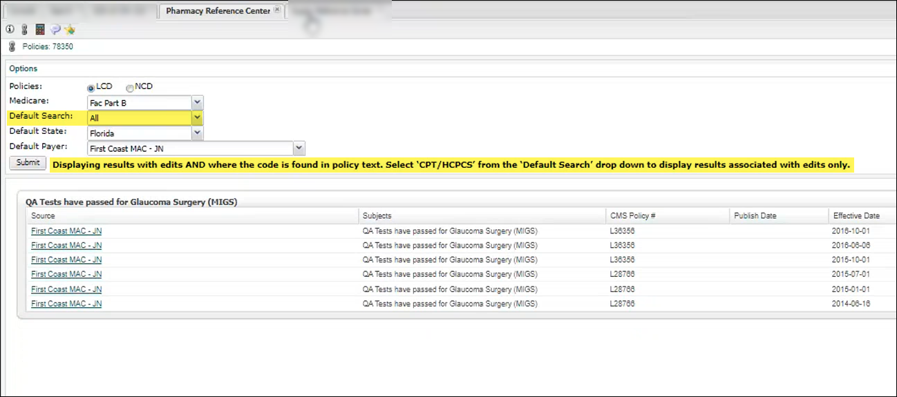 If you see the message, No policy edits for the selected Payor/State, this means there are no medical necessity edits for the selected policy. This does not mean that there is no policy information.