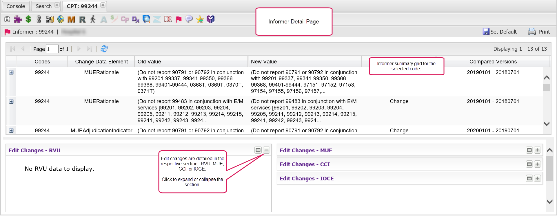 Click a hyperlinked code to be navigated to the Informer Detail page where users review the changes specific to the selected code.