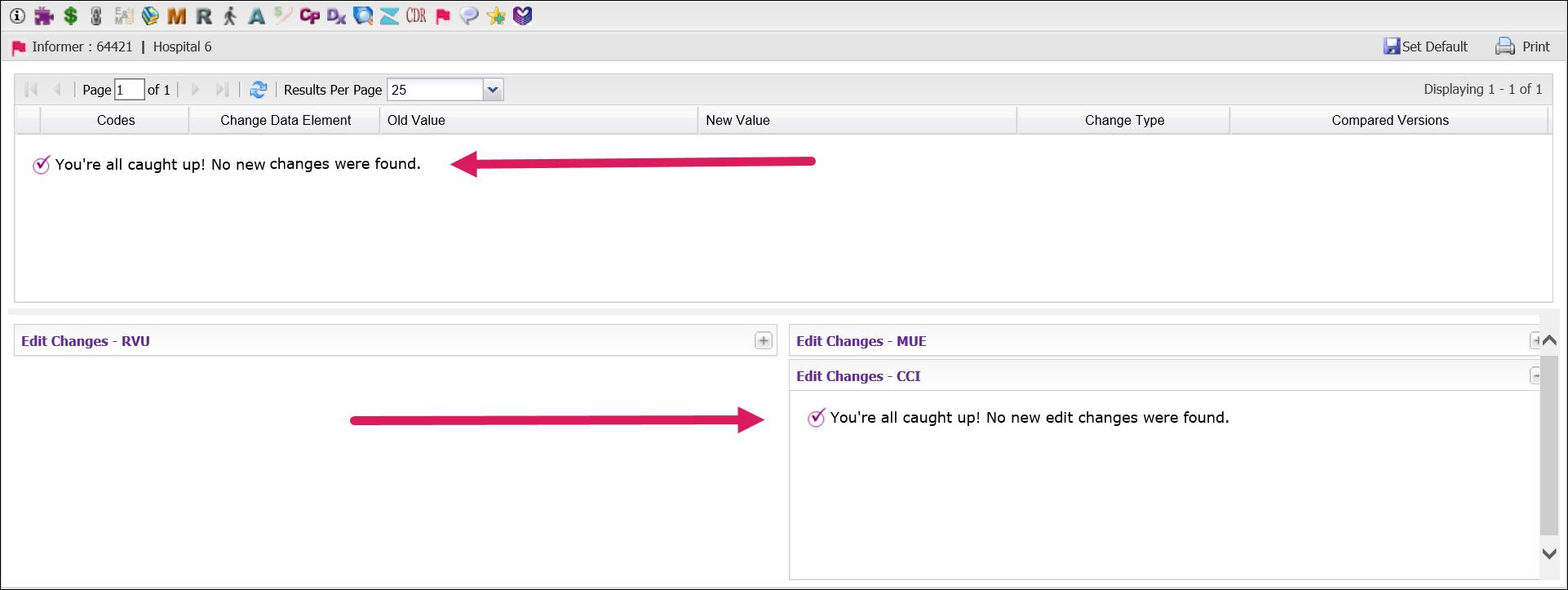 Upon login to Knowledge Source, there are two ways to be alerted of informer code changes. The following actions navigate users to the Informer Summary grid.