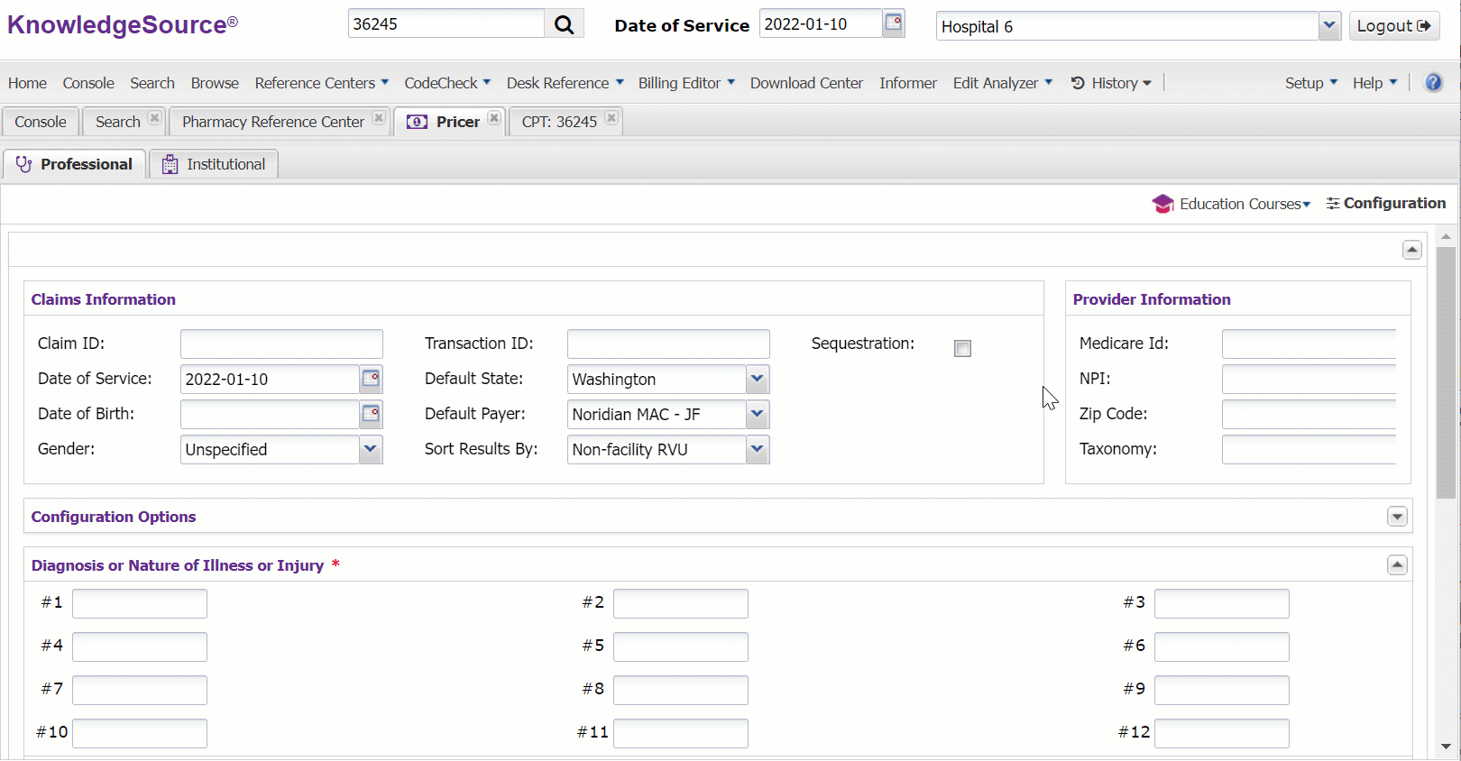 The CodeCheck > CPT/CCI page now displays two panels: the CodeCheck CPT/CCI Input form as well as the new Edit Informer Input form. Both panels are expandable/collapsible. Follow this procedure to use the Edit Informer Input form.