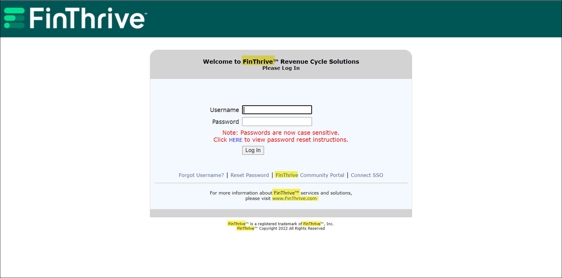 To prepare for future Single Sign On (SSO) through FinThrive Connect a Connect SSO option has been added to the login page.