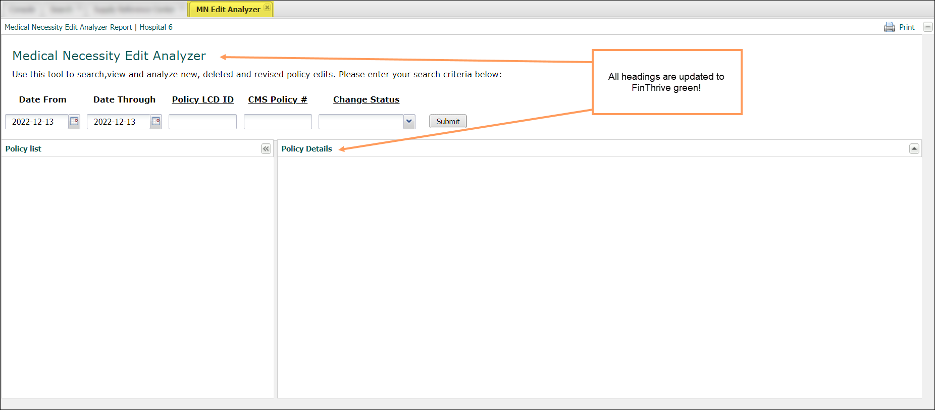 Displaying results with edits only. Select 'All' from the 'Default Search drop down to display results with edits only AND where the code is found in policy text. |