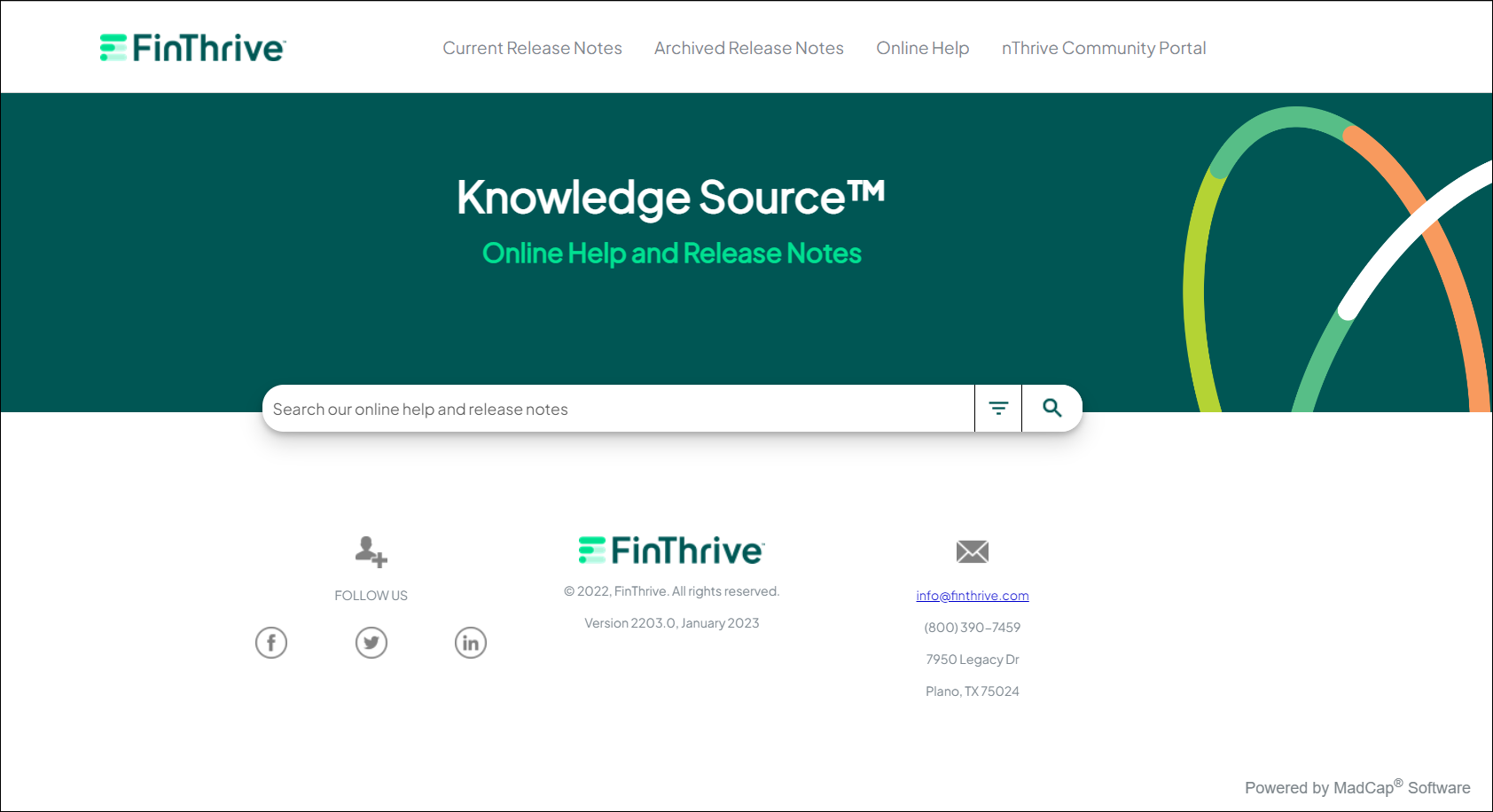 The Knowledge Source Online Help and Release Notes are updated to reflect the FinThrive company brand.