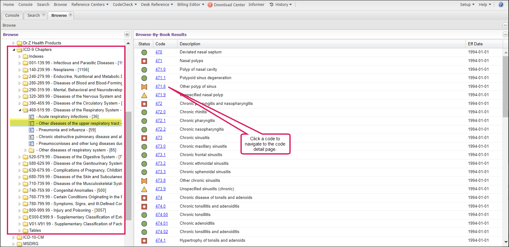 Access clinical, CDR, and DRG coding references from Optum360®. Click a reference in any of the following collections to view its contents in the adjacent results panel.