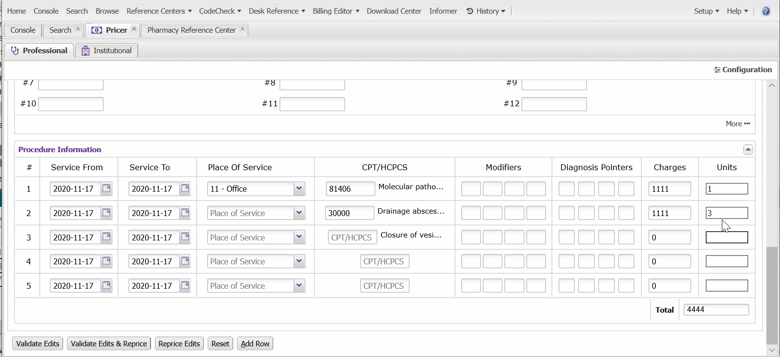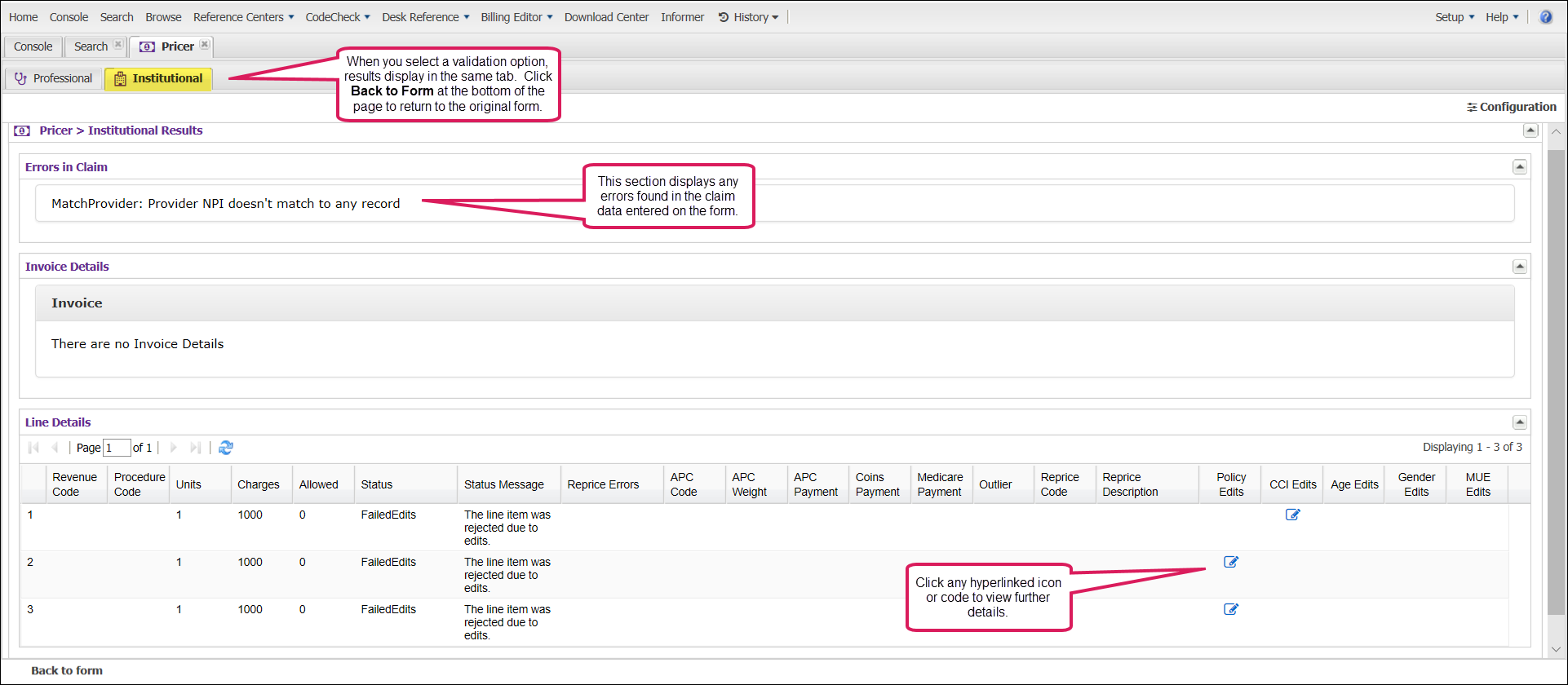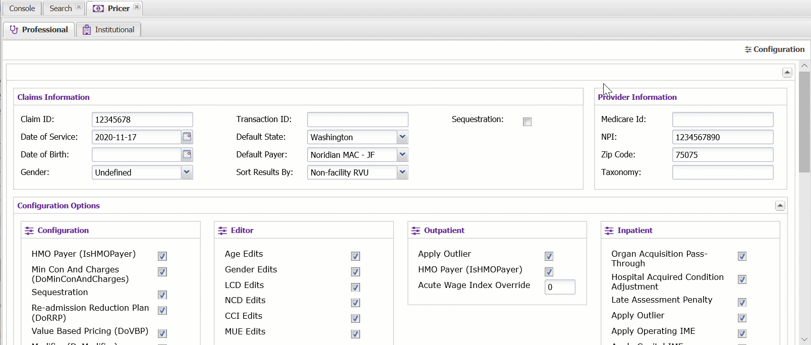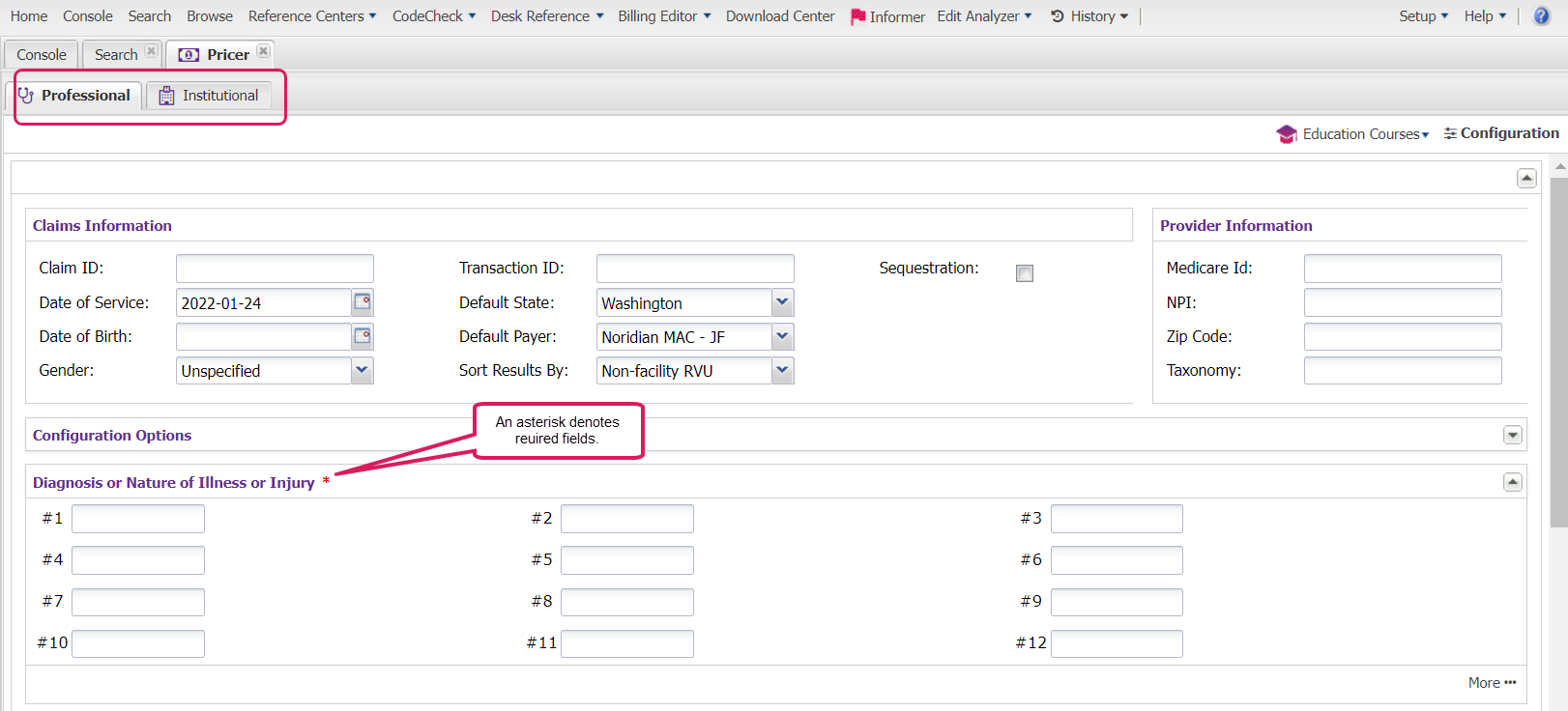 The Institutional and Professional claim pricer forms allow Claimshop users to validate claim grouping, pricing, and edits utilizing the power of Knowledge Source.