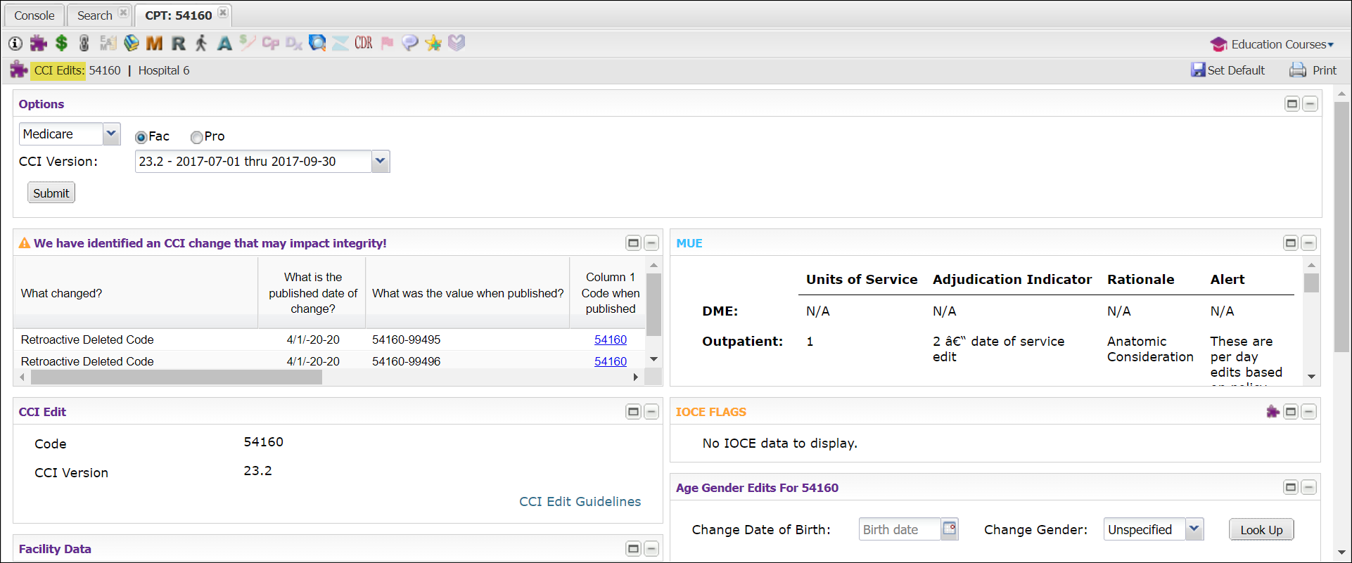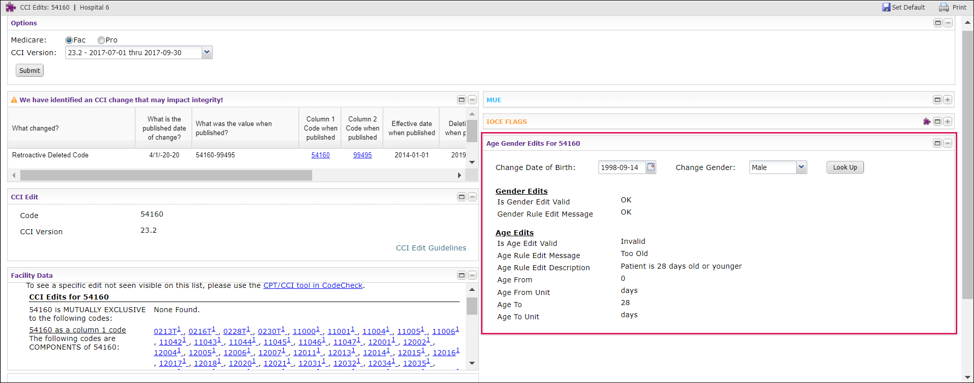 When there are CCI or MUE edit changes, informer sections display explaining the change details. For a comprehensive list of CPT/HCPCS, ICD-10 CM, and ICD-10 PCS changes, see the Informer interface. |