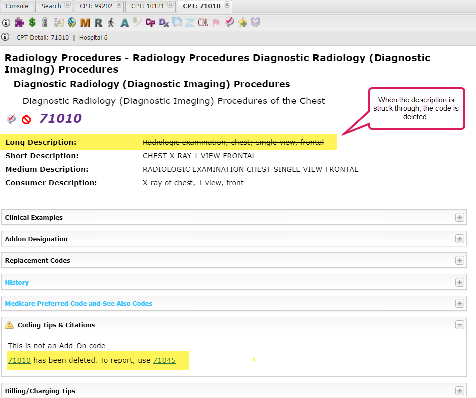 in the icon bar to be navigated back to the CPT/HCPCS Detail page.