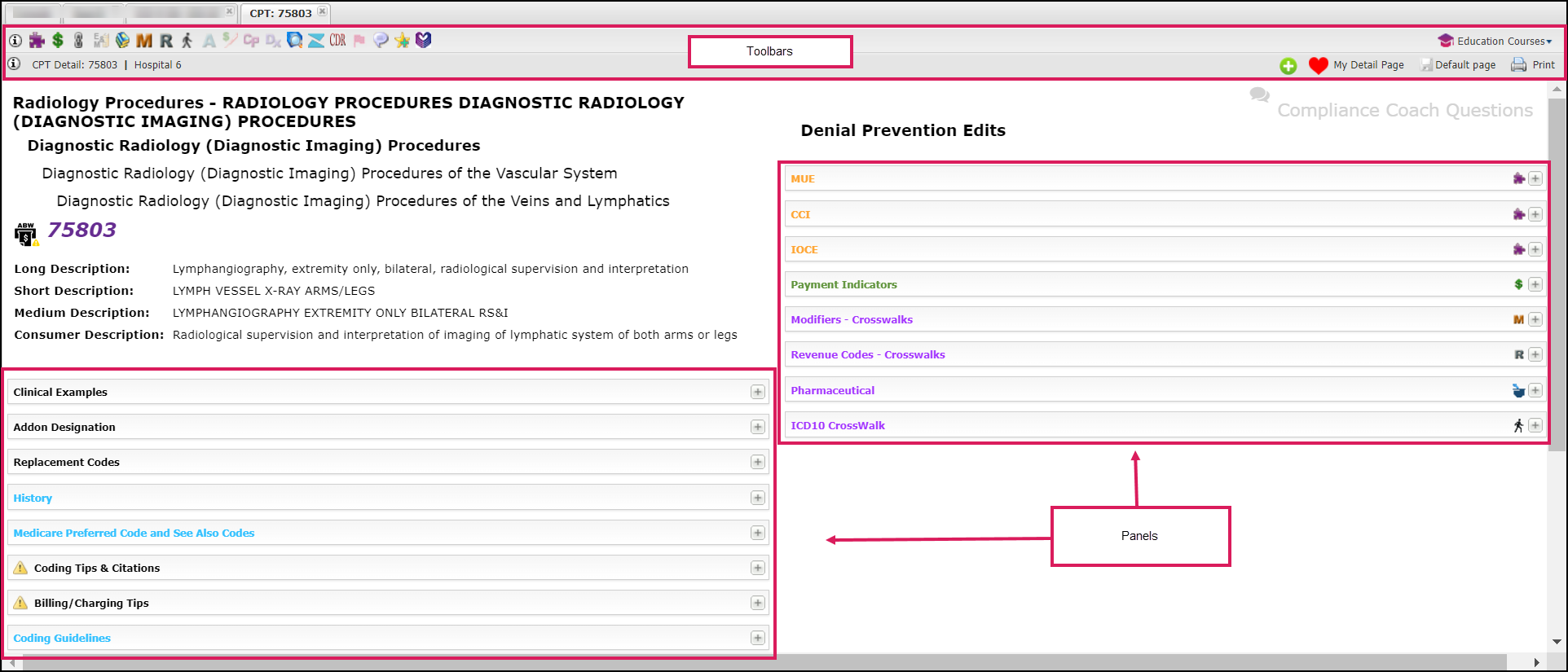 Note: To make the CPT/HCPCS Detail page your default, see Default Code Detail Pages.
