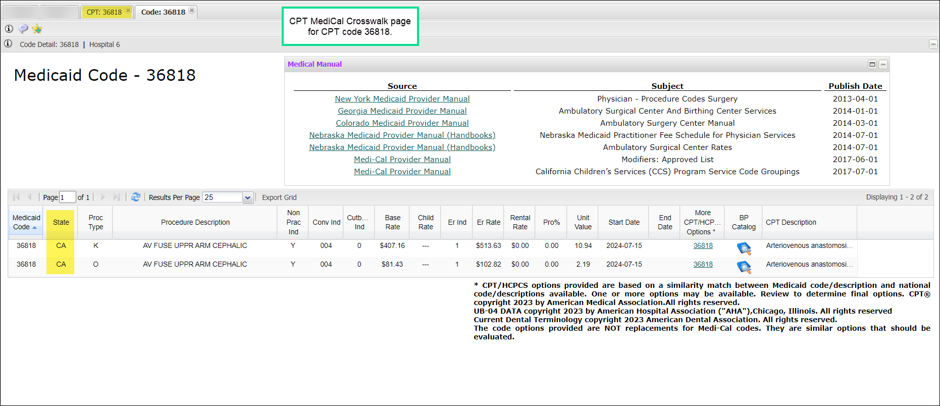 If you have access to California Medicaid (MediCal), this feature lets you view CPT codes that are cross-walked to MediCal.