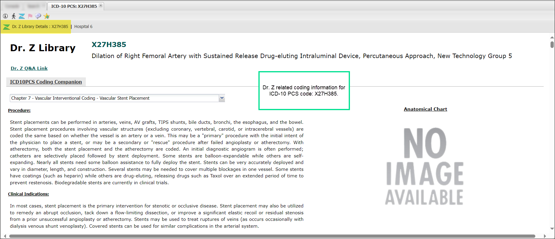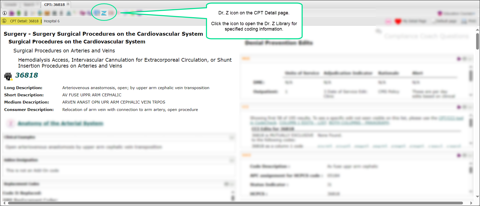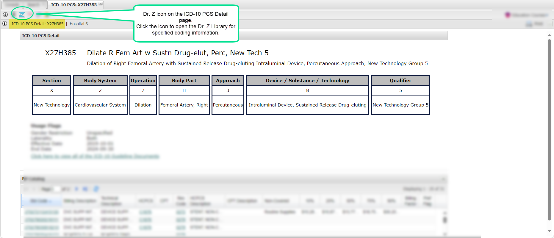 The Dr. Z icon is available from the CPT/HCPCS or ICD-10 PCS detail pages.