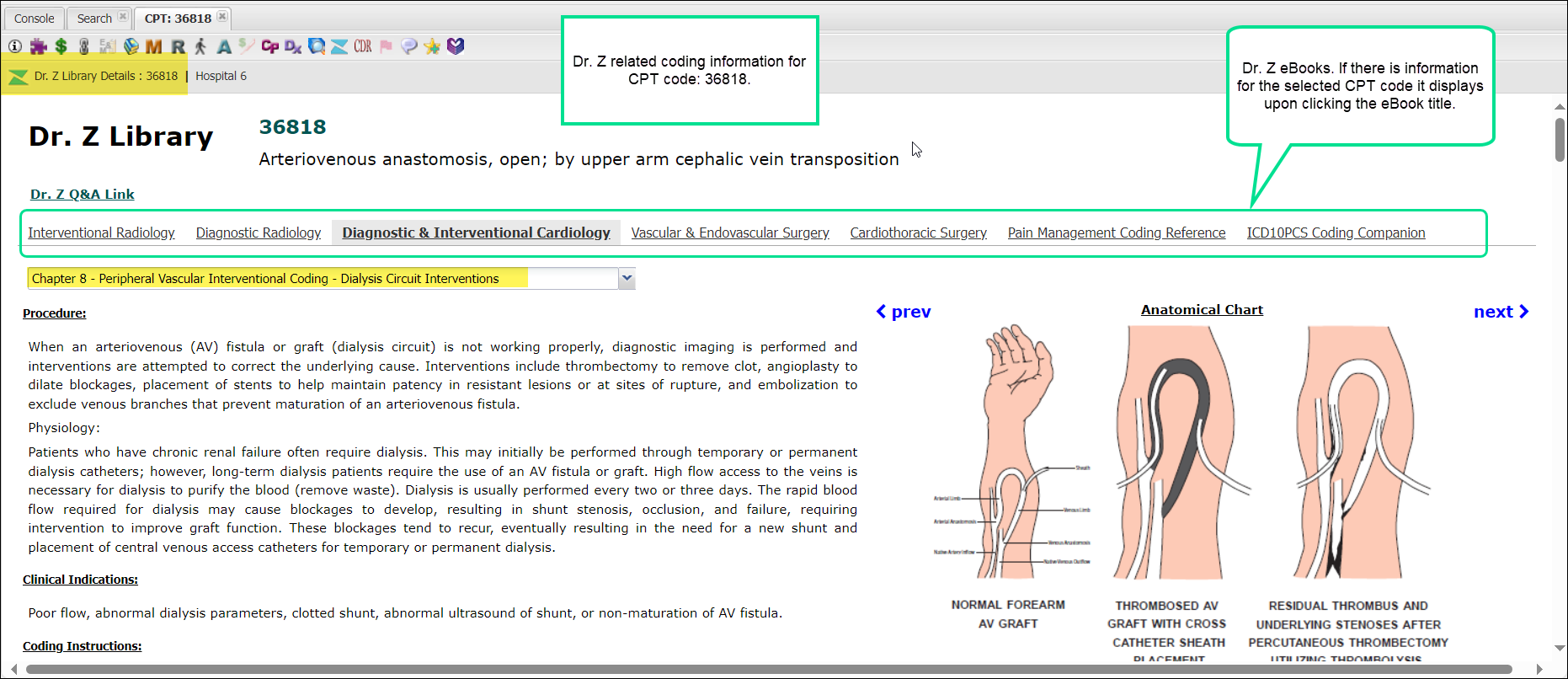 Note: Access to the Dr. Z Library requires an additional add-on fee. Clients can choose to add one, some, or all of the Dr. Z ebooks. To learn more about purchasing this add-on, contact an FinThrive representative. For licensed clients, the following user roles are required to access the respective collection: Dr Z Cardiothoracic User, Dr Z Diag Cardiology User, Dr Z Diag Radiology User, Dr Z ICD 10 PCS User, Dr Z Interv Radiology User, Dr Z Pain Management User, Dr Z Vasc Endvasc User.
