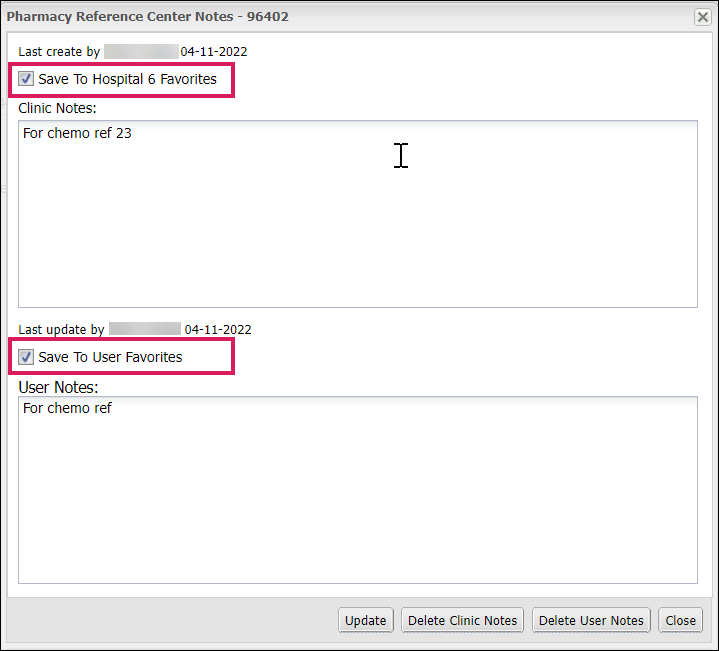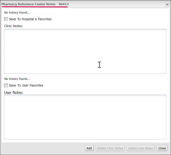 Add or update a code as a Clinic or User note for the selected facility. Clinic notes are visible to all users in the respective facility. User notes are visible only to the respective user. ![]()