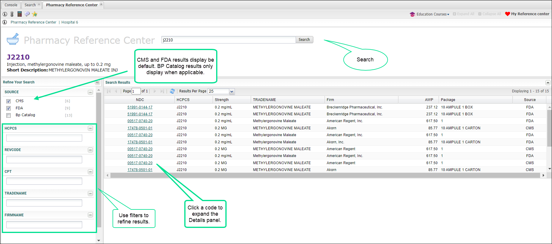 The Pharmacy Reference Center provides pharmaceutical coding details in one convenient location. The interactive interface lets you view and filter search results, perform billing calculations, view policies, and drill down to specific code details.
