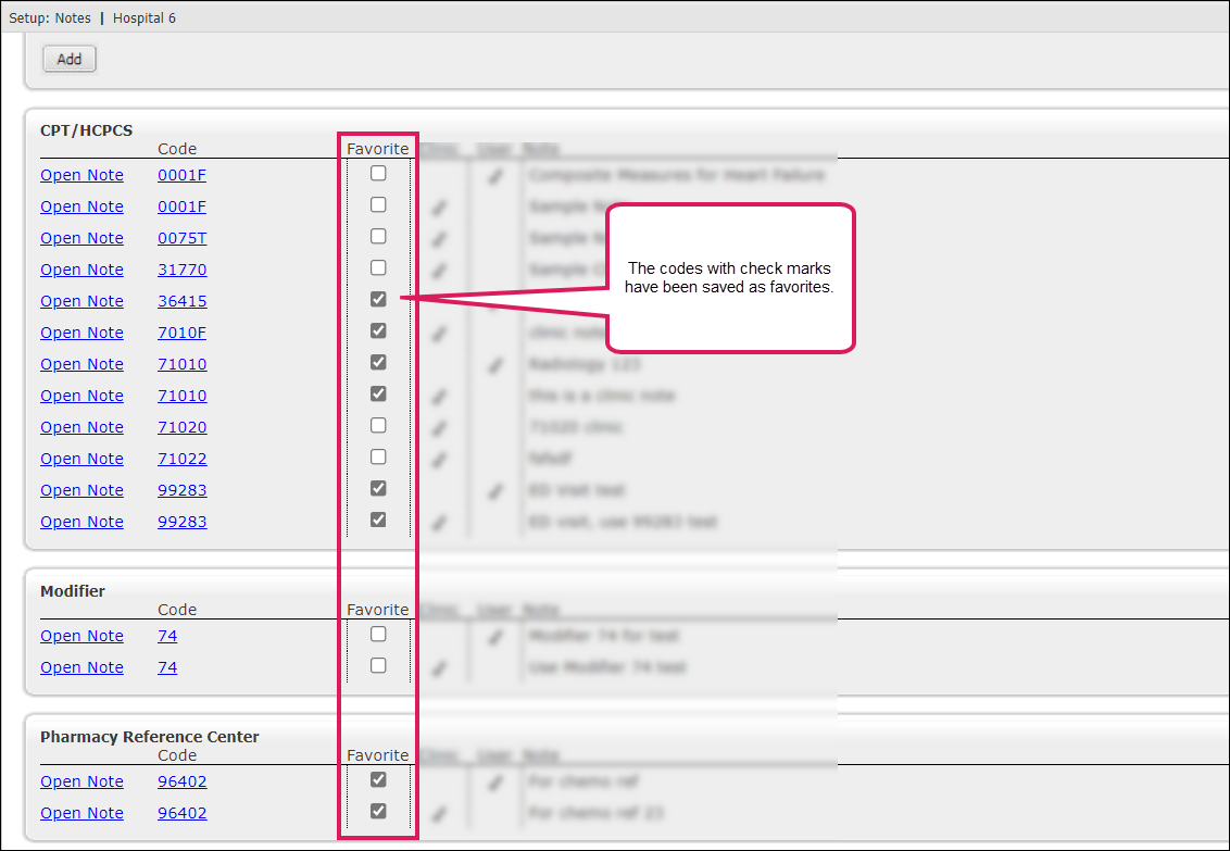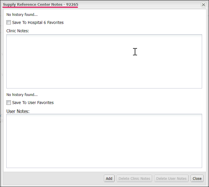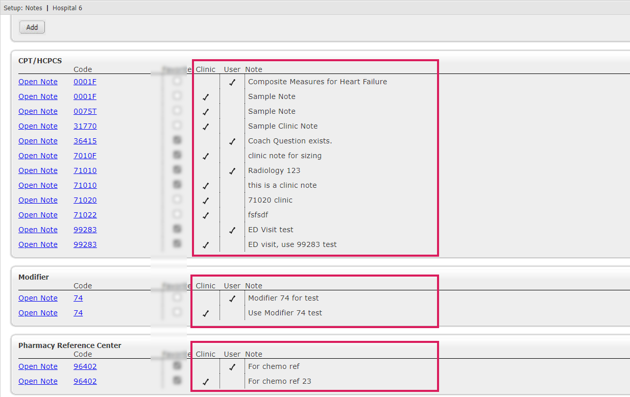 Add or update a code as a Clinic or User note for the selected facility. Clinic notes are visible to all users in the respective facility. User notes are visible only to the respective user. ![]()