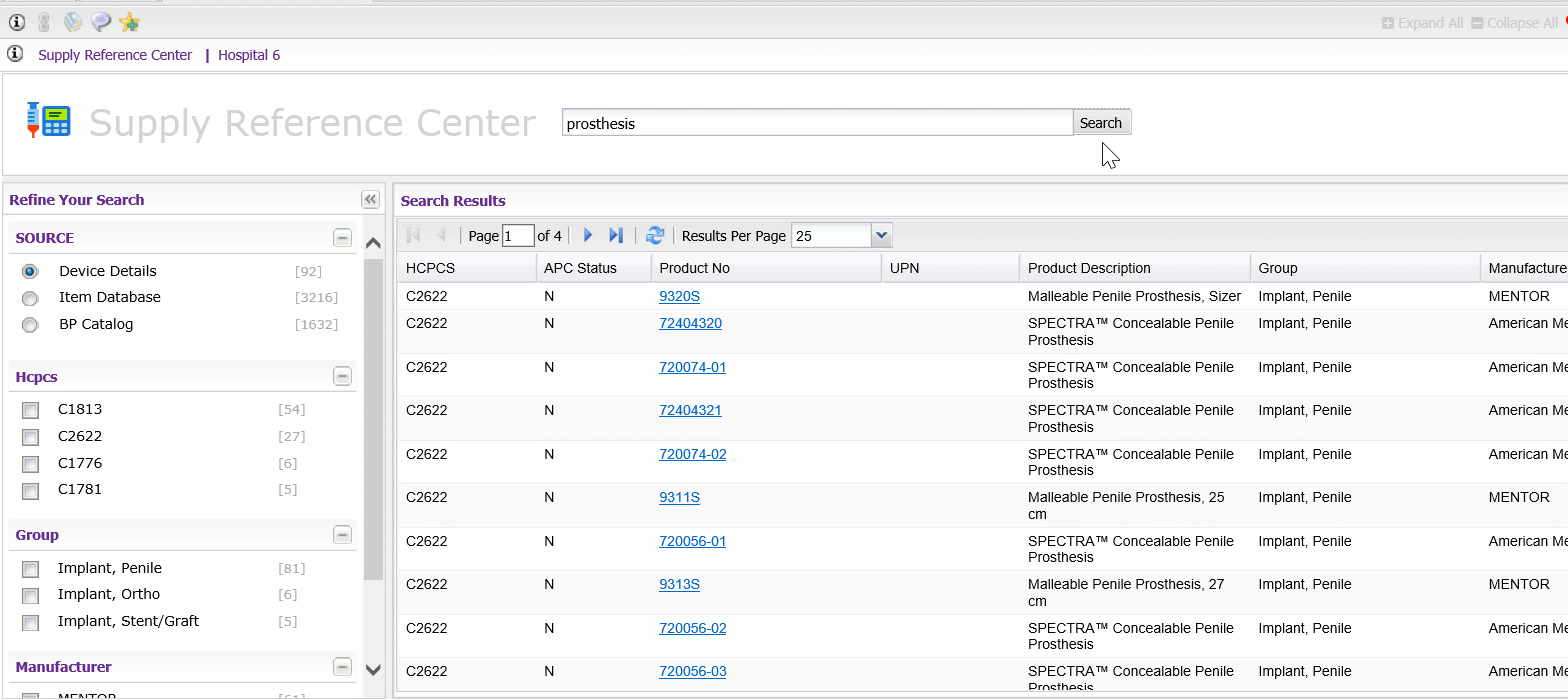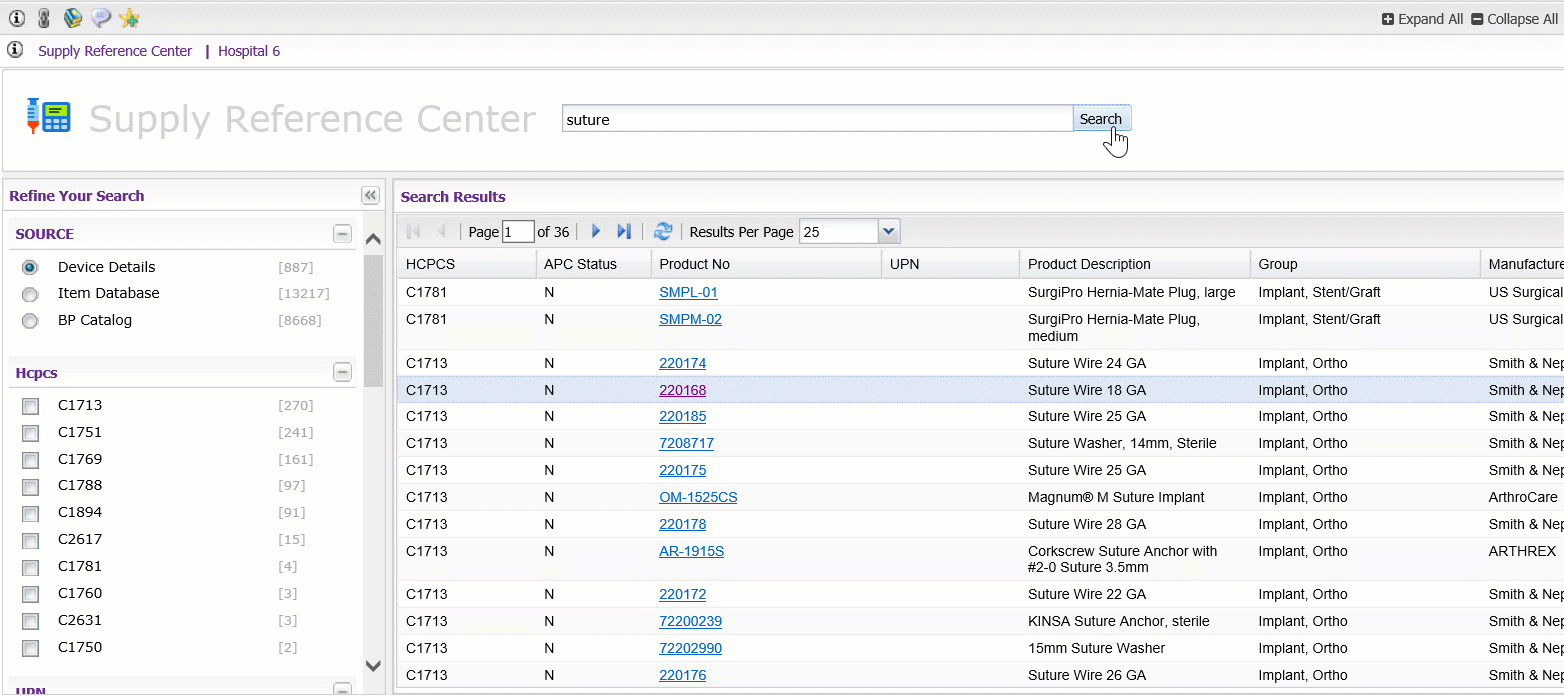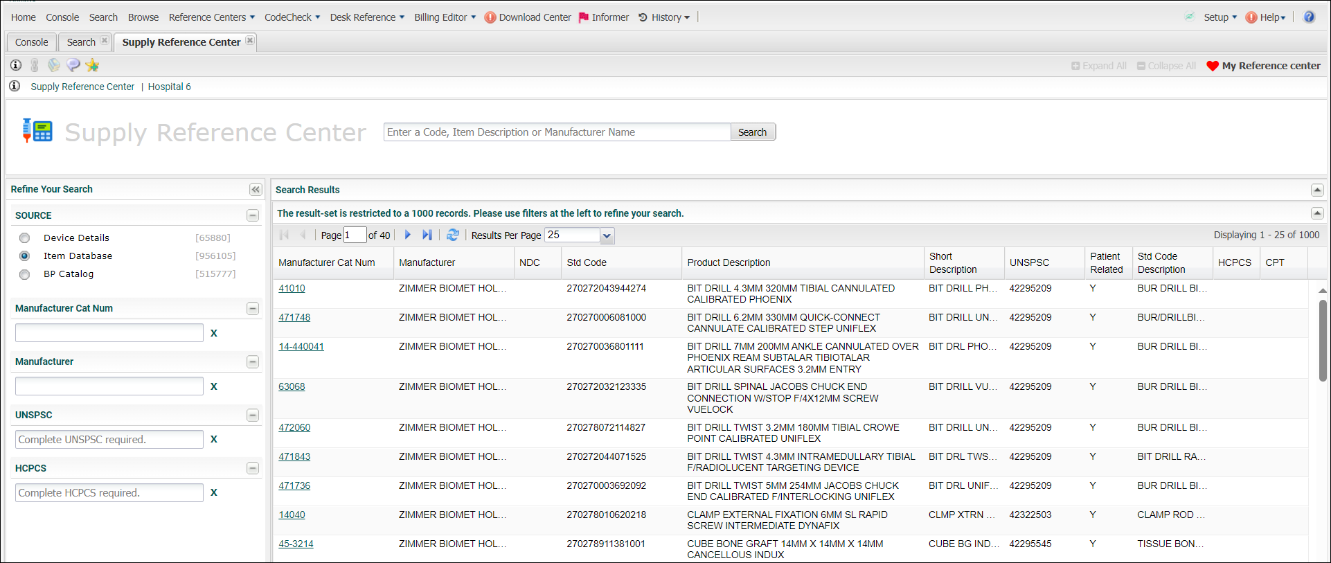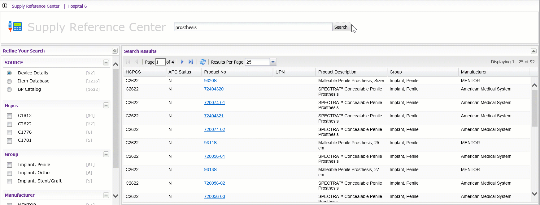 The Supply Reference center leverages three sources when you perform a search: Device Details, Item Database, and BP Catalog.