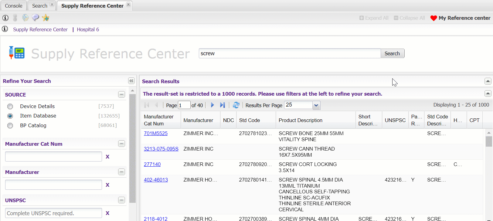 My Reference Center for Supply lets you customize views for three sources: Device Details, Item Database, BP Catalog.