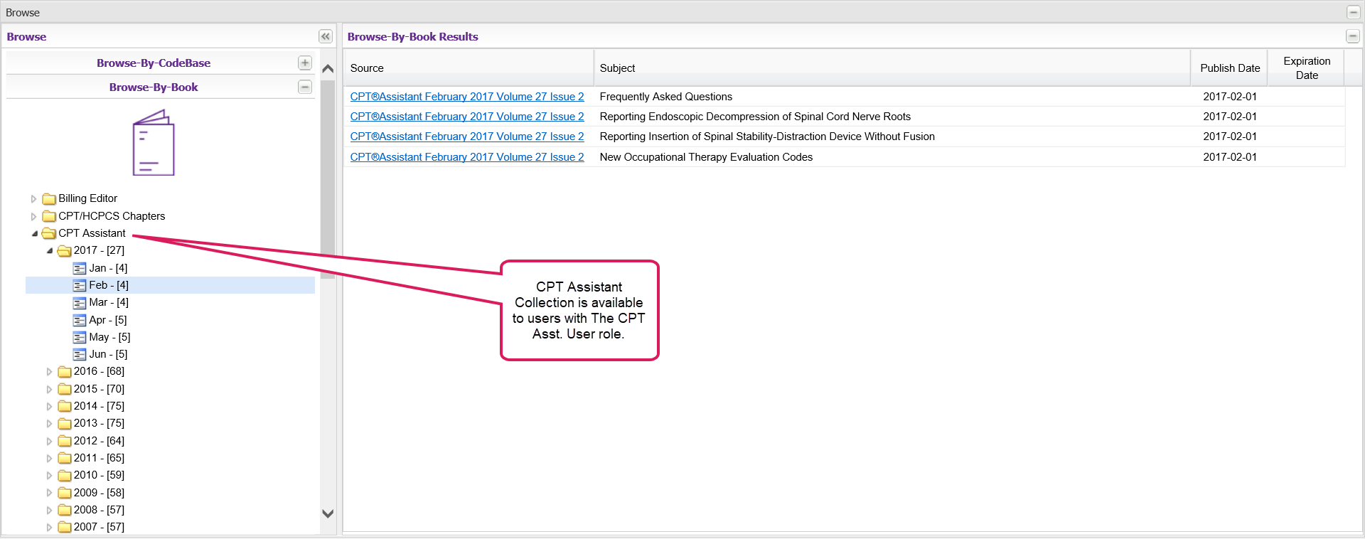 Note: The CPT Assistant collection is available for users with the CPT Asst. User role.