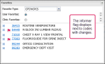 In the Show Favorites window, an Informer flag displays next to codes with changes. Click a code to navigate to the code detail page. On the detail page, click in the icon bar to view the specific code changes.