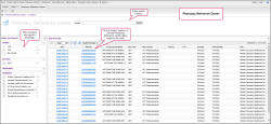 The Pharmacy Reference Center allows users to search for drug codes, drug names, NDC codes, or manufacturers in one single location. Search results display in grid format with a Refine Your Search panel to the left. Refine Your Search lets users filter the search results to see specific groupings. The panel is expanded by default, but users can collapse at any time.