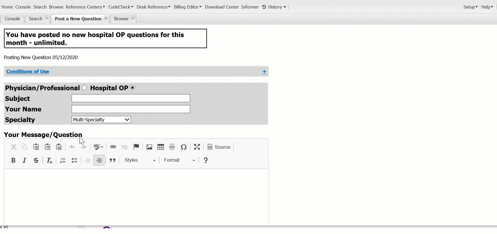Added a Conditions of Use link in Coach. The link is available for all users on the Post a New Question page and Browse-by-Coach. Click the link to read the conditions in a new window.