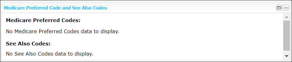Updated the name of the Medicare Preferred Code panel to Medicare Preferred Code and See Also Codes. Added See Also Codes and comments fields to this panel.