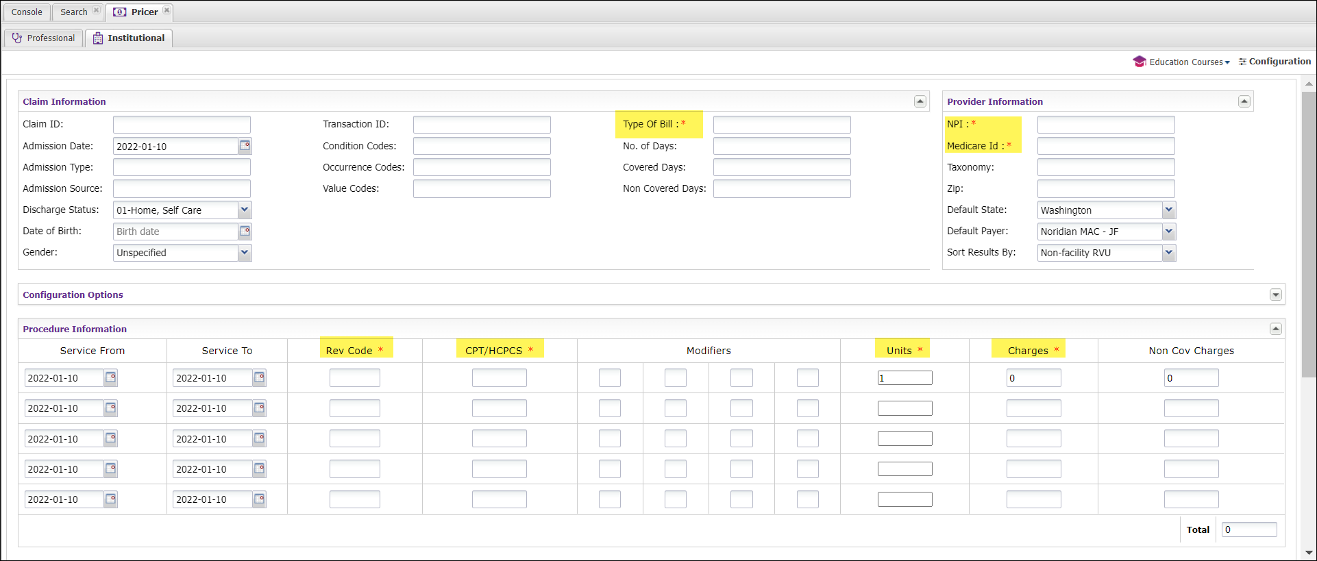 Updated the Institutional and professional Pricer forms so that required fields display an asterisk ( * ).