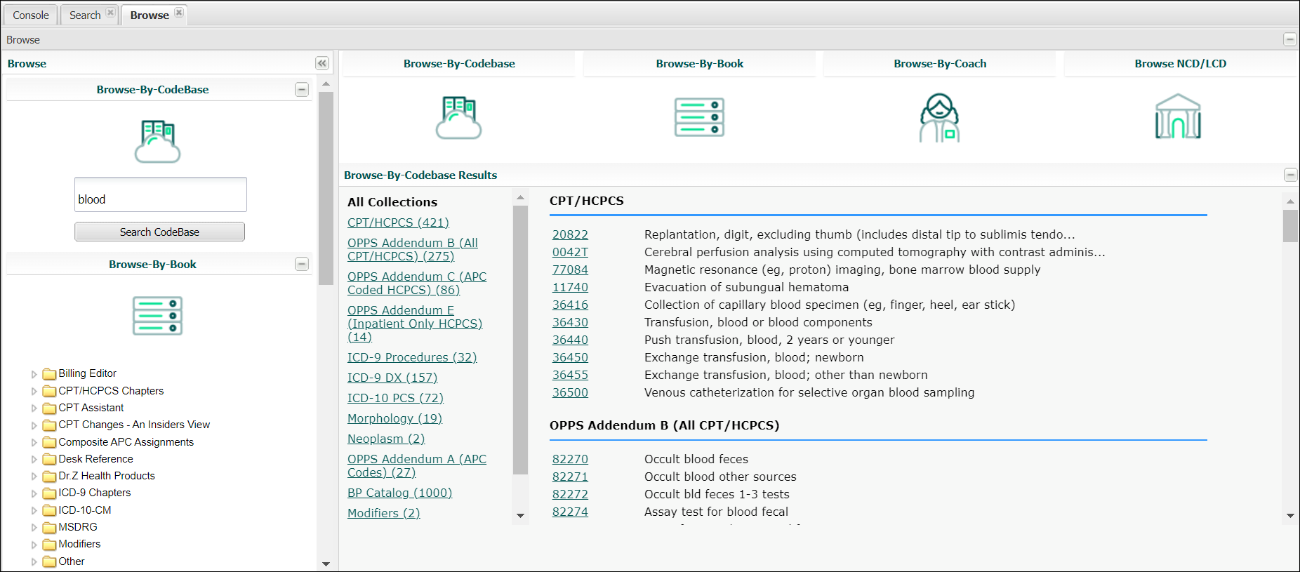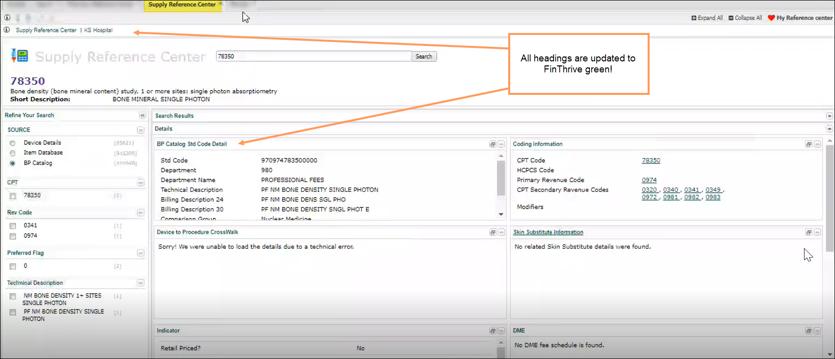The results can be toggled by selecting the Default Search option in the UI. To make this more intuitive, we have added new messages when viewing the results from the CPT/HCPCS, ICD10 and Supply/Pharmacy Reference Center pages.