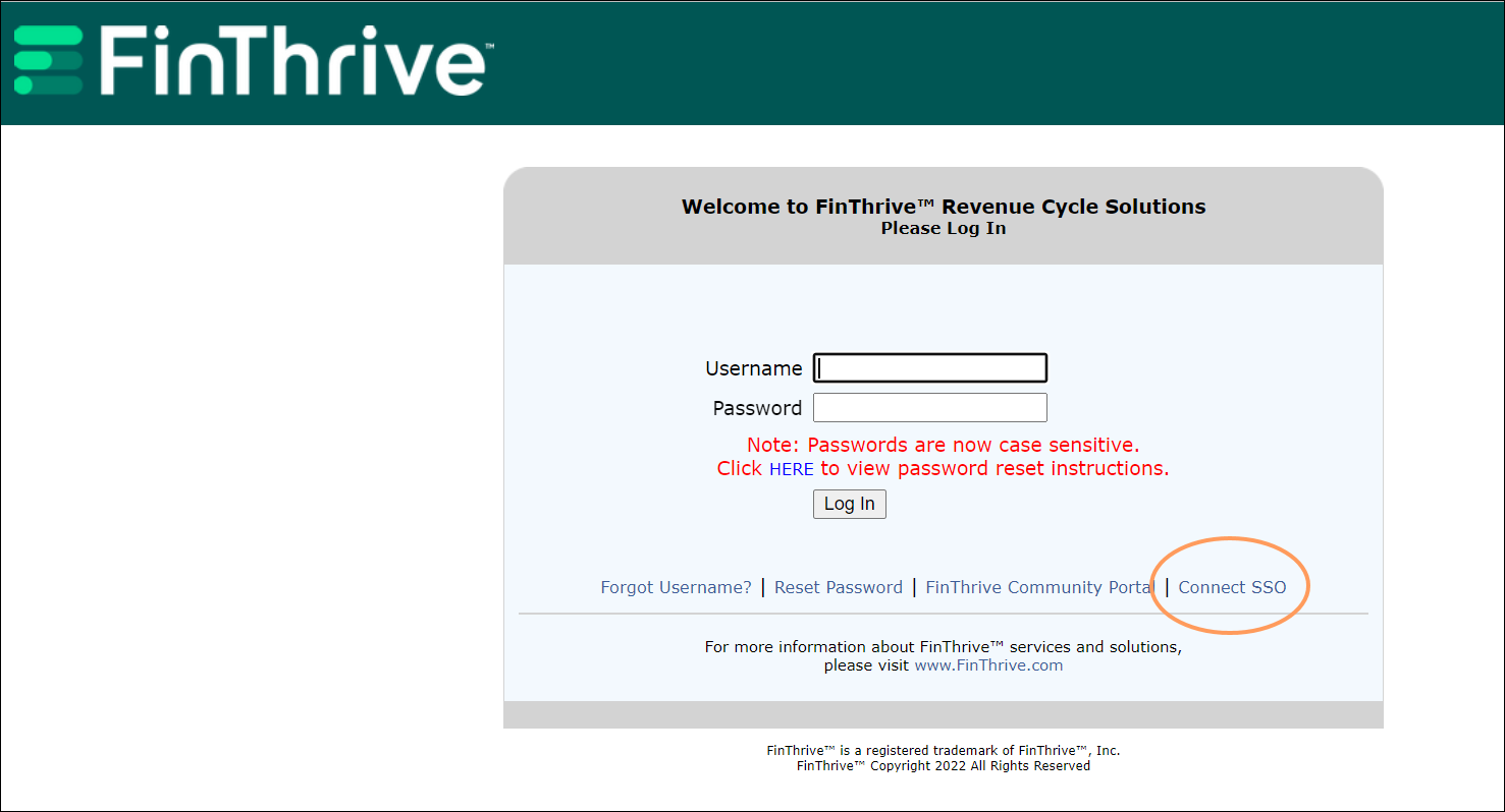 To prepare for future Single Sign On (SSO) through FinThrive Connect a Connect SSO option has been added to the login page.