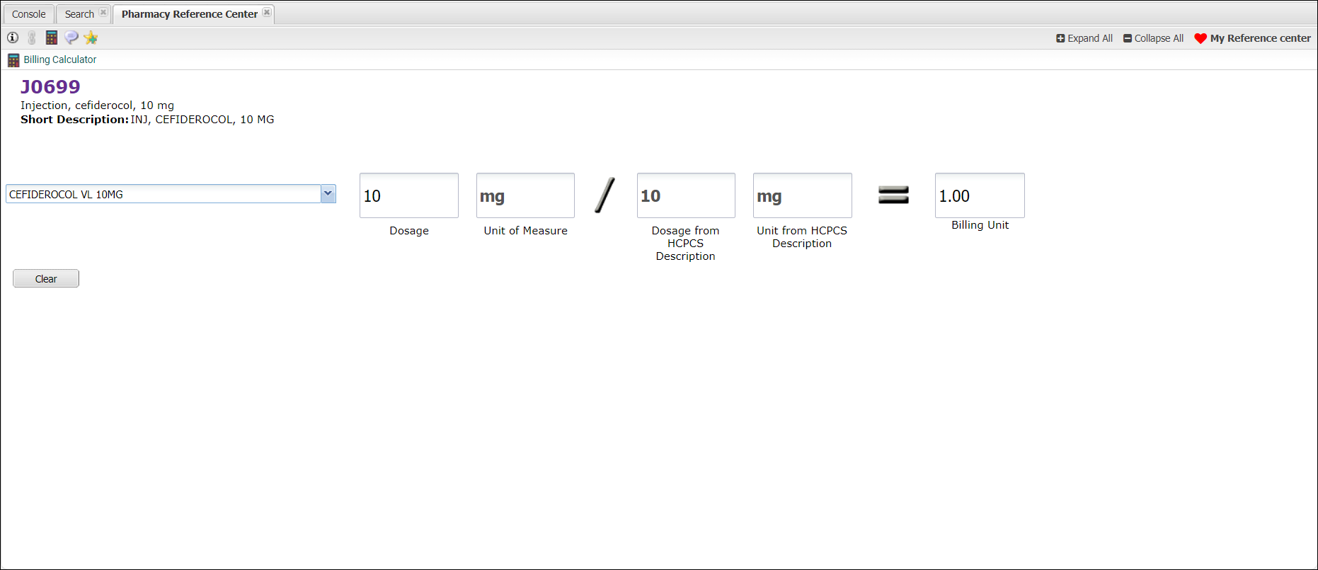 Updated the Billing Calculator in the Pharmacy Reference Center so that the selected unit of measure displays correctly.